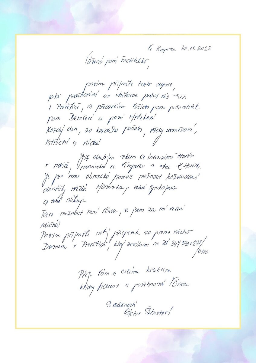 Poděkování našim pracovnicím paní Benešové a Mrázkové z pečovatelské zlužby ve Vimperku :-)